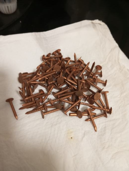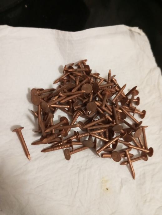 Čavli bakreni duž= 25mm =100 kom= 10 eura Bakar-otporan na koroziju, koriste se za prišivanje ljepenke, šindre na krovištima ! mt(2--alat)
