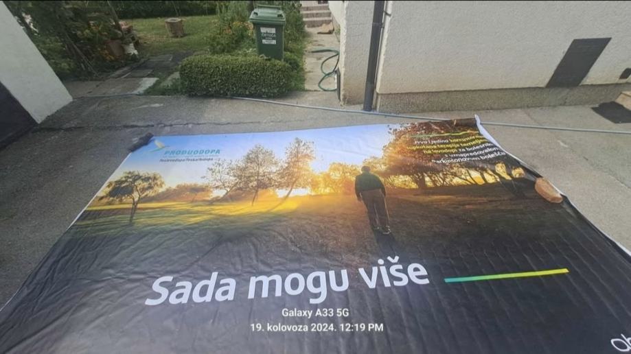 Prodajem veliku ceradu s reklamnim printom, potpuno nova. Radi se o profesionalnoj ceradnoj tkanini s ispisanim grafičkim motivima, pogodna za različite namjene. Dimenzije su prilično velike, kao što se vidi po razvedenoj površini. Materijal je otporan i vodootporan, može poslužiti za privremenu zaštitu, pokrivanje ili kao podlogu. Imam više komada 700x300 su 50eu 400x250 35eu i manje su po 25 eura ,moguća dostava zagreb I okolica uz simboličkih 10eu