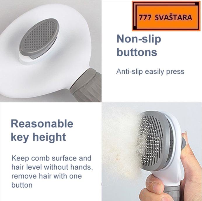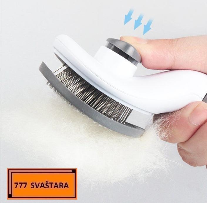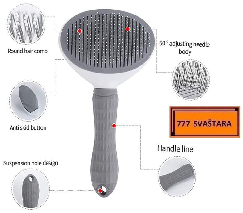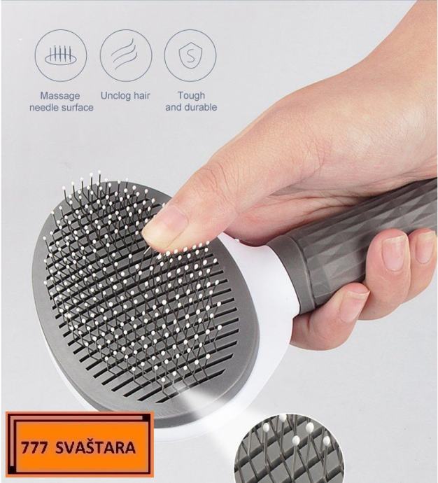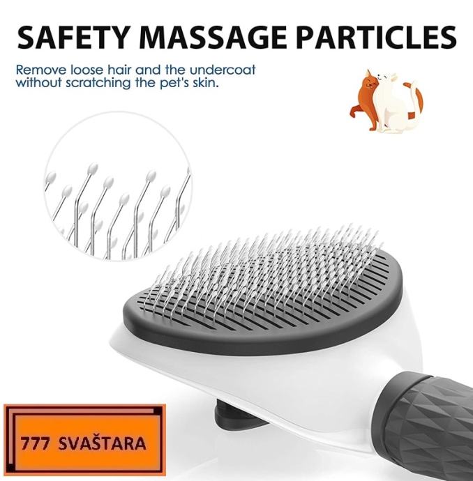 Kada završite s češljanjem svog ljubimca, samo kliknite gumb i raspuštena dlaka će biti izbačena iz četke, tako da se možete pripremiti za sljedeću upotrebu. Obični vrhovi igle od nehrđajućeg čelika imaju kuglice za masažu, koja neće oštetiti nježnu kožu vašeg ljubimca.