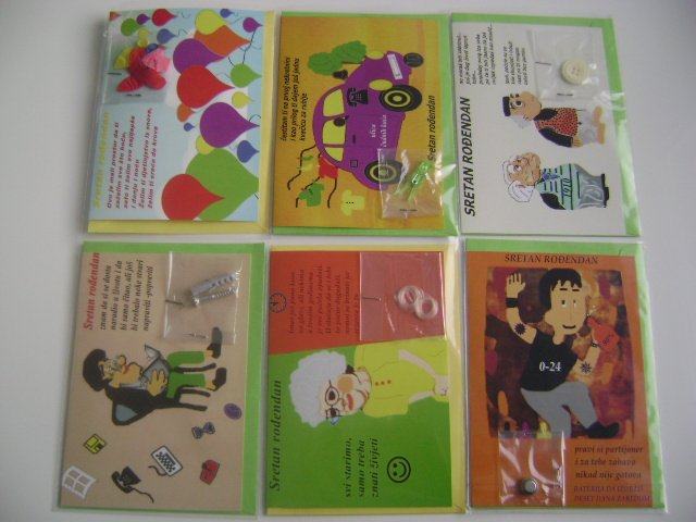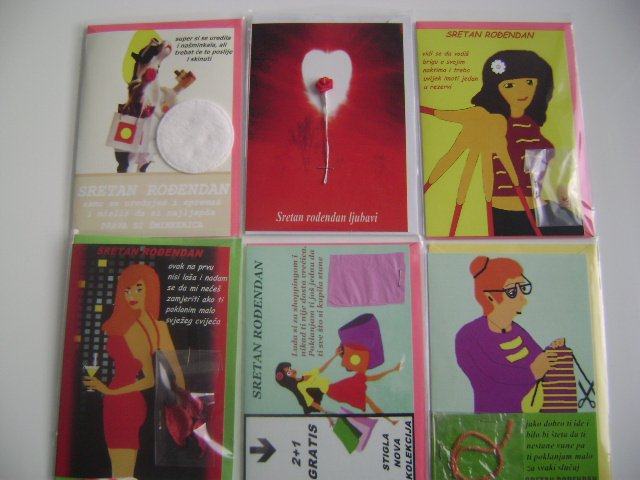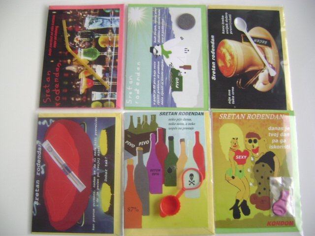 Prodajemo najšaljivije čestitke na tržištu. Čestitke su ručno izrađene i na kvalitetnom papiru. Pogodno za gift shopove, knjižare, tabacco i ostale trgovine.