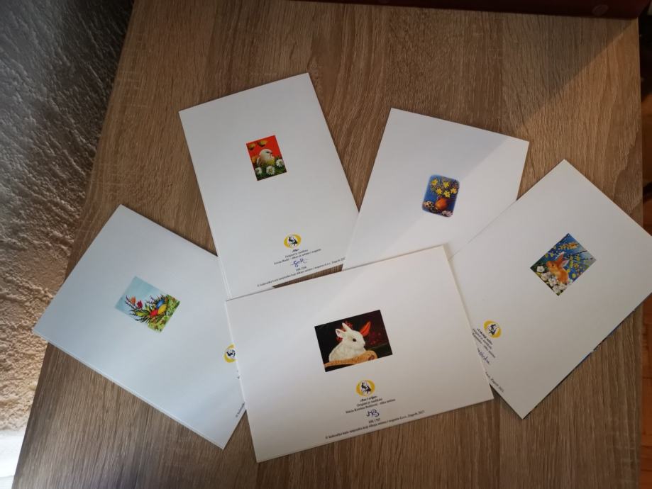 Cestitke za Uskrs preklopne 5 kom sa kovertama, nove. Izradili umjetnici koji slikaju rukama i nogama