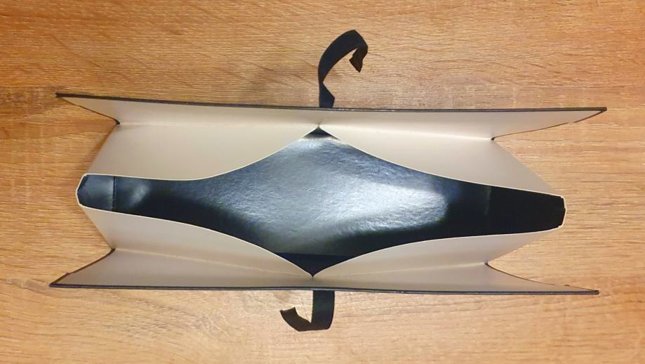Novo, piramidalnog oblika. Zatvara se sa dvije crne trake.