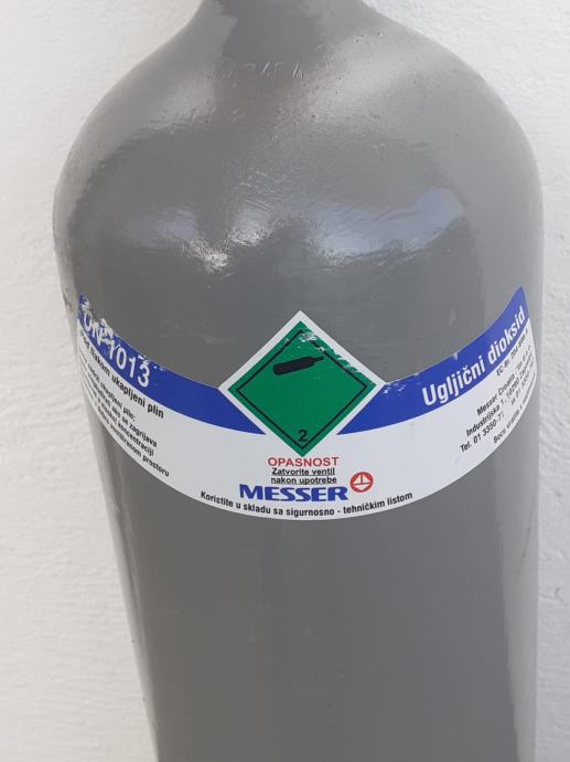 CO2 boca od 5 kg,idealna za ugostitelje stane ispod šanka male težine cca 15 kg puna boca. Punjenje od 5kg dovoljno za cca 750 litara točenog piva.Visina boce 68 cm.