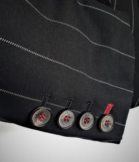 Na rukavima i kragni prošiven je crvenim koncem. Sastav-vuna/viskoza