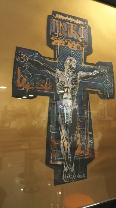 "Raspelo" komb. tehnika, 1992. 34x24cm na zlatnoj podlozi, crni lak okvir