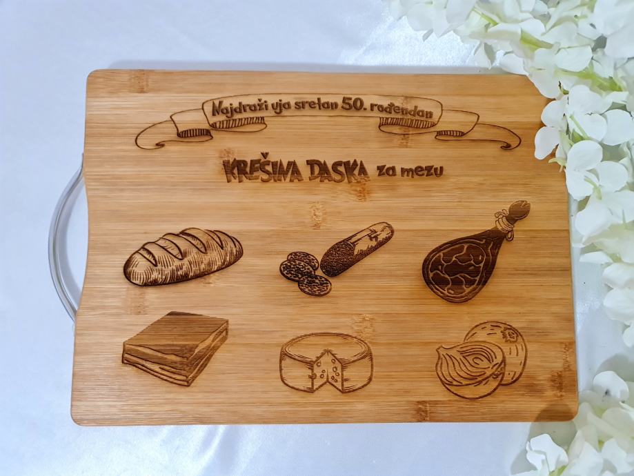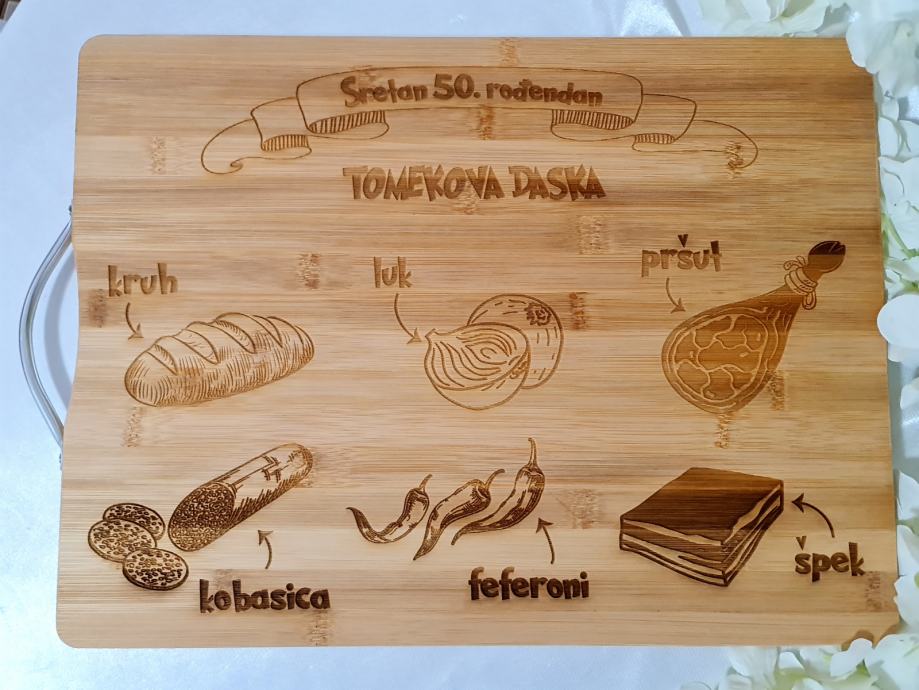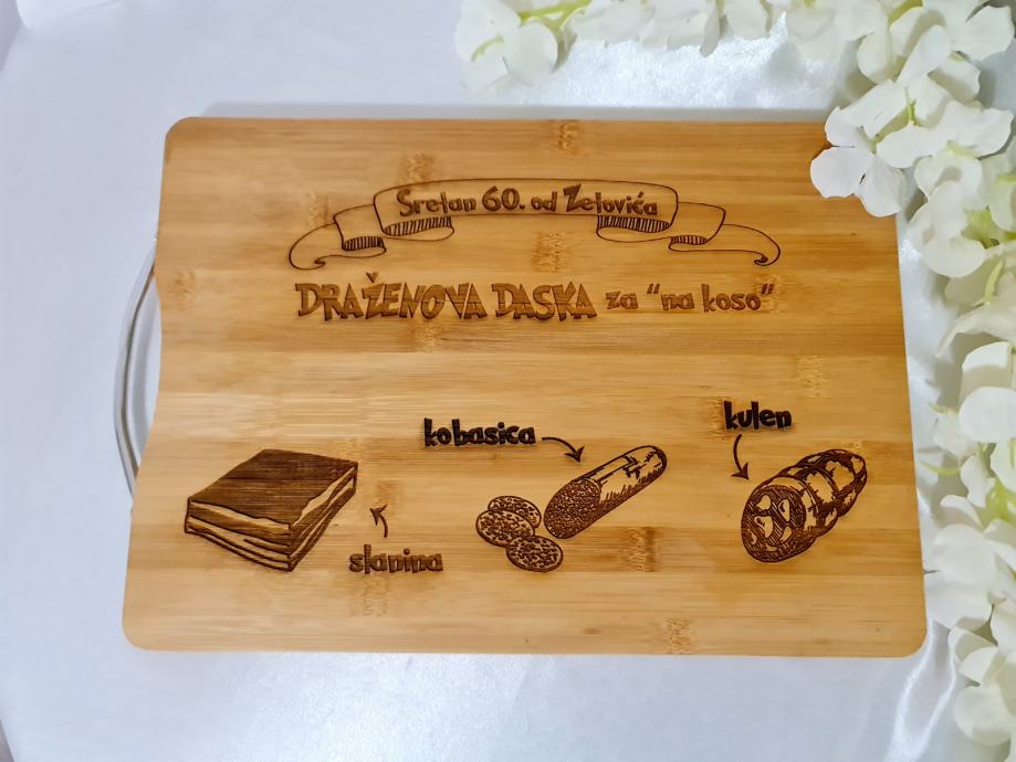 Personalizirana daska za rezanje sa natpisom i dizajnom prema vašim željama.