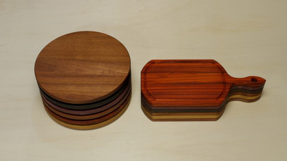 Mogućnost izrade u raznim veličinama (najveća daska koju smo do sada radili je 170 x 30 cm - serviranje za deset osoba) i oblicima (četvrtasti, pravokutni, okrugli i raznih nepravilnih oblika - rezanje CNC strojem 250 x 125 cm, a shodno vašim potrebama za razne namjene (serviranje hamburgera, pizza, pizzeta, roštilja, pečenja, narezaka, sira, mesa, voća, kruha, peciva...).