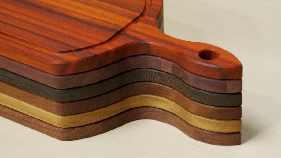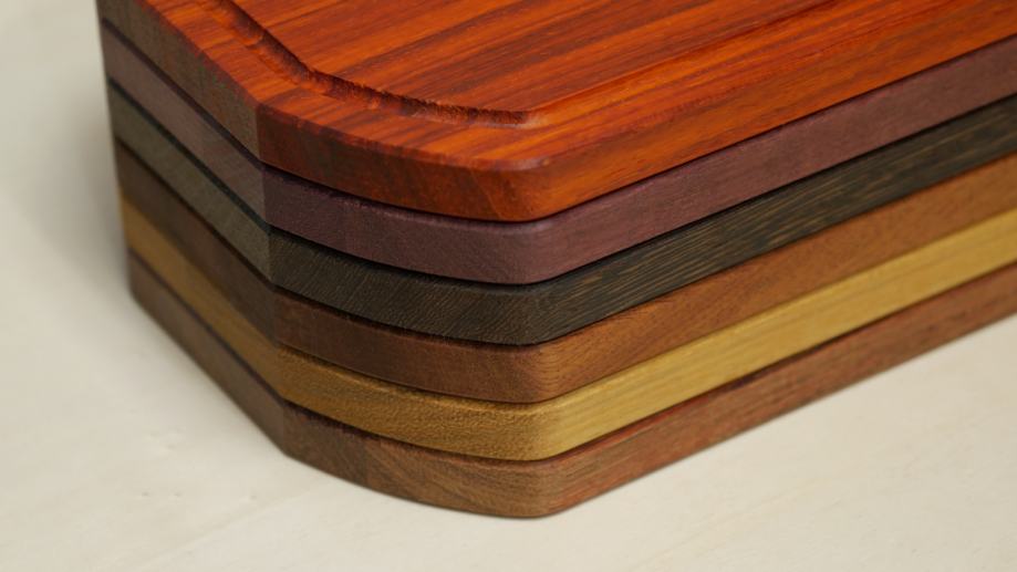 Koristimo standardno vrste egzota kao što su sapelli, iroko, padouk, wenge, purple heart i jatoba. Mogu biti izrađene od samo jedne vrste drveta ili kao priložene slike od kombinacije više njih.