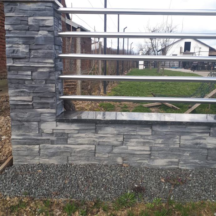 Okapnice i kape za stupove u istoj boji odabranog dekorativnog kamena dostupne u raznim dužinama.