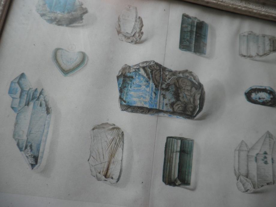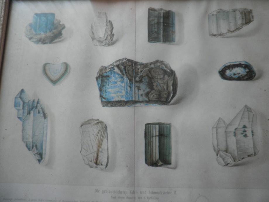 Dvije uokvirene i ustakljene slike dragog kamenja u prirodi , specificirano 30 vrsta dragog kamenja sa njemačkim nazivima za pojedinu vrstu .... pojedinačno 100 kn / kom , ... a obje slike za samo 150 kn !!!!!!!!!