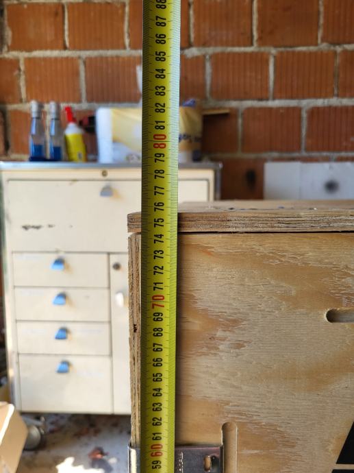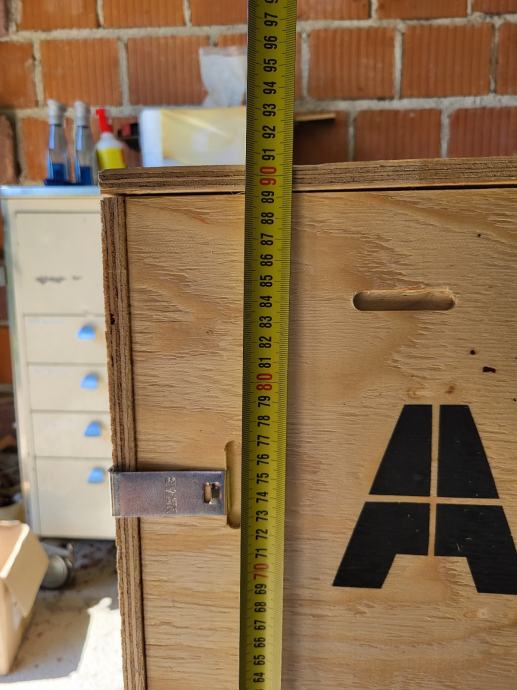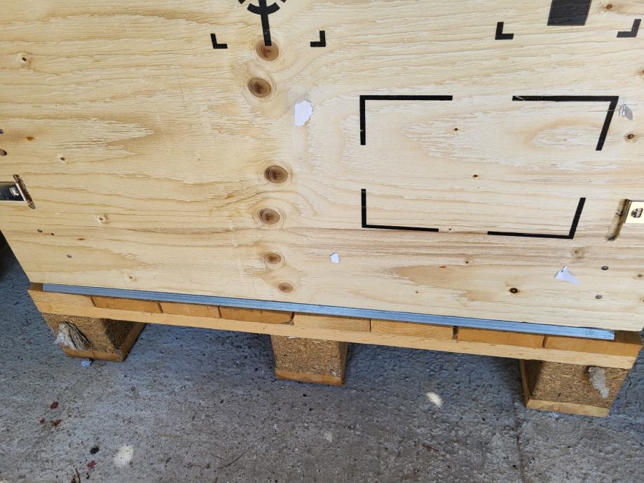 Drvena kutija s poklopcem od šperploče integrirana na paletu zahvaljujuči inovativnim metalnim šinama. Kutija se može raskopat ili složit doslovno za 5 minuta bez ikakvog alata, a pritom ostaje čvrsta i kompaktna. Dimenzije kutije zajedno s paletom su cca 2000*800*900. Točne mjere su na slikama. Kutija se nalazi u Bistri kraj Zaprešića.