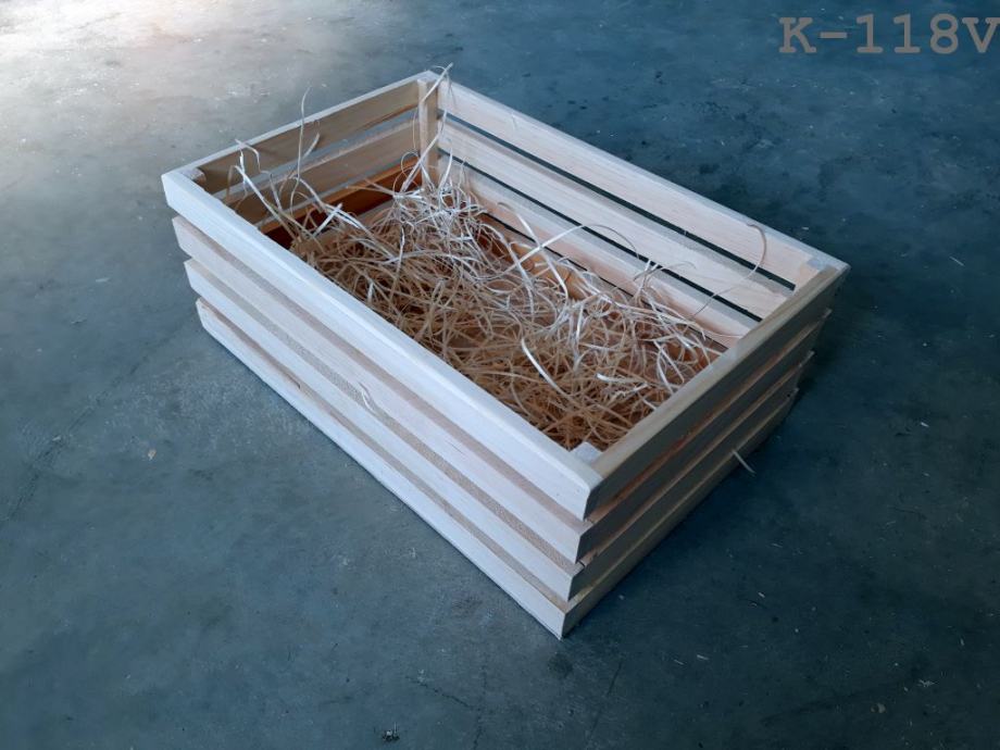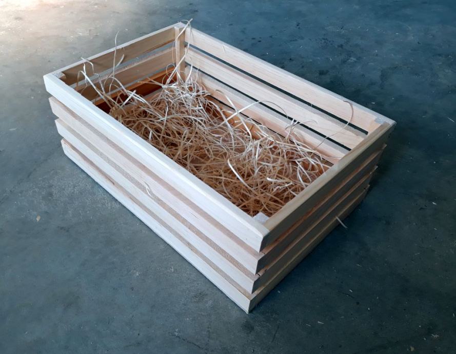 Za pakiranje poklona, dimenzija 37*24*13 cm, masivno drvo, male mase, bušeno viskom granulacijam, proizvedeno u Hrvatskoj.