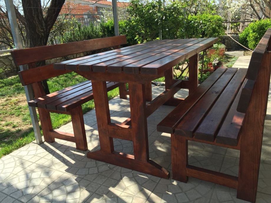 Prodajem 10 kompleta drvenih stolova sa klupama za ugostiteljstvo. VRLO POVOLJNO !!!