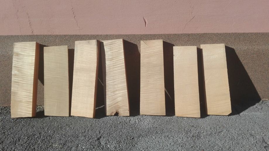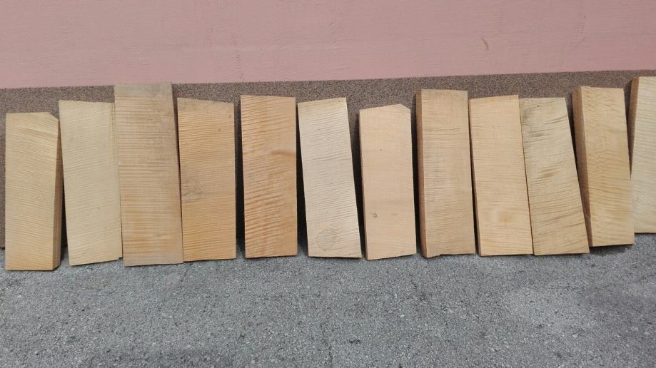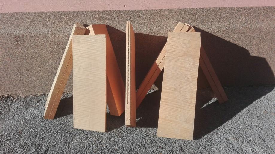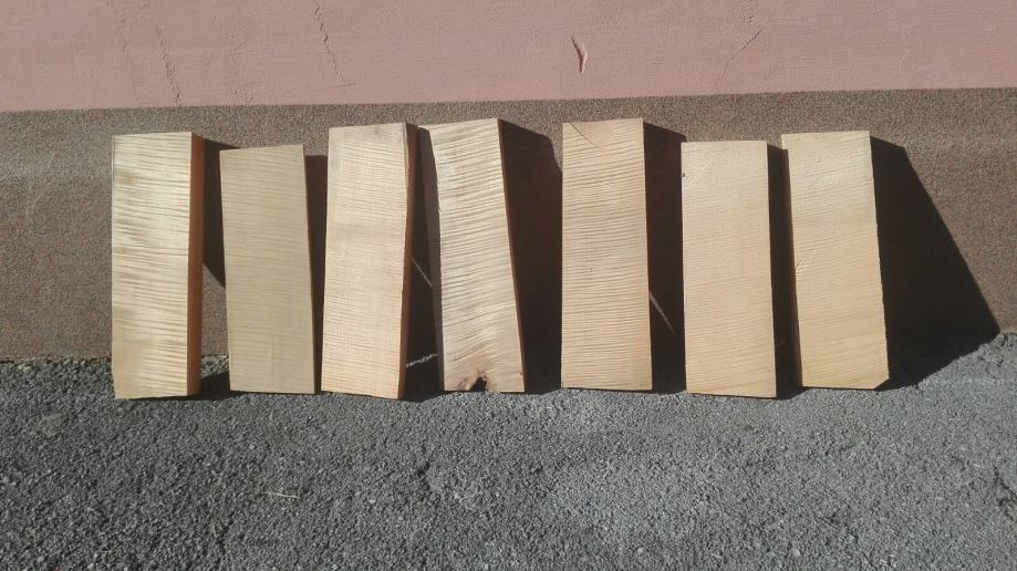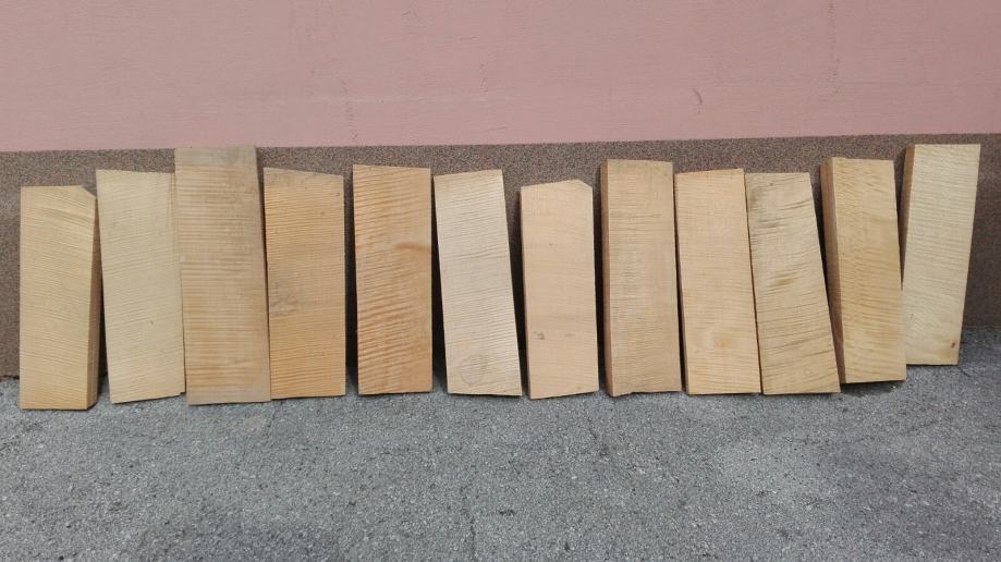 Prodajem drvo Javor rebraš za izradu violina u obrađenom stanju drvo stoji 15 godina osušeno, cca 50 kom.Dimenzije dužina 45 širina 13cm. Cijena po komadu 100 kn ili po dogovoru
