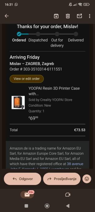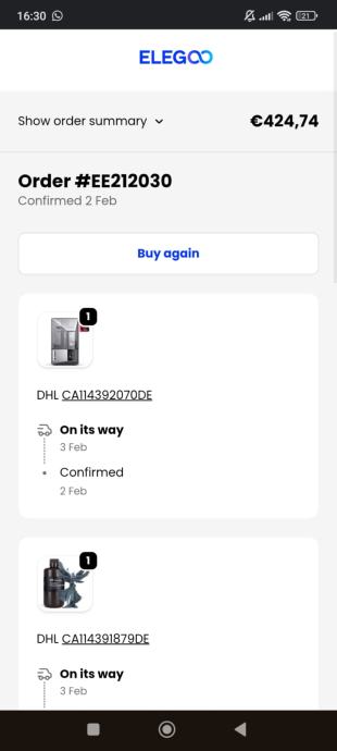 Printer i sva oprema su kupljeni na Elegoo stranici prije 2 tjedna ( screenshot u slikama ).