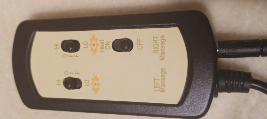 2 postavke temperature, 2 brzine masiranja, visoki/niski intenzitet masaže. Odvojene komande za lijevu i desnu stranu.
