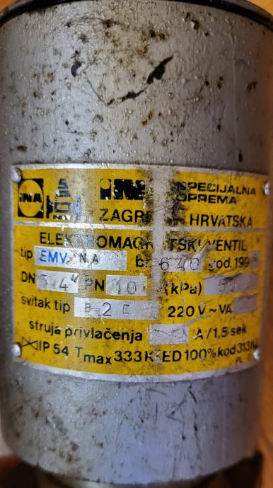 Elektromagnetni ventil proizvođača INA Specijalna oprema, Zagreb, prodajem. Molim zvati na mob. 091/538-0407