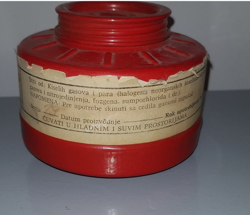Prodajem filter vojne JNA plinske (gas) zelene maske MC-1 - vojna i civilna. Promjer /fi/ navoja je 60mm.