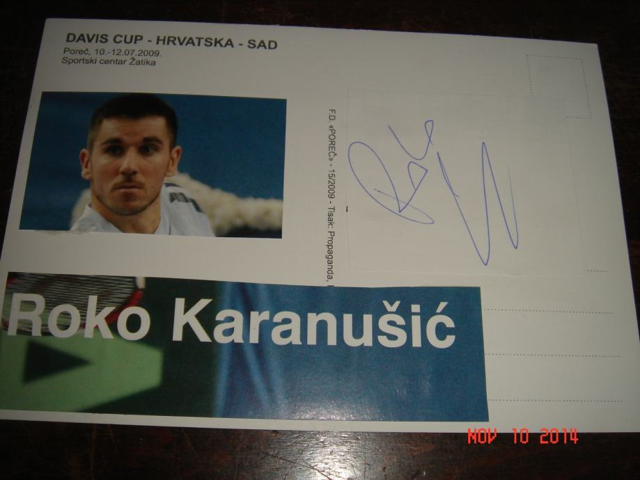 fotografija i potpis tenisača Roko Karanušić , reprez. Hrvatske