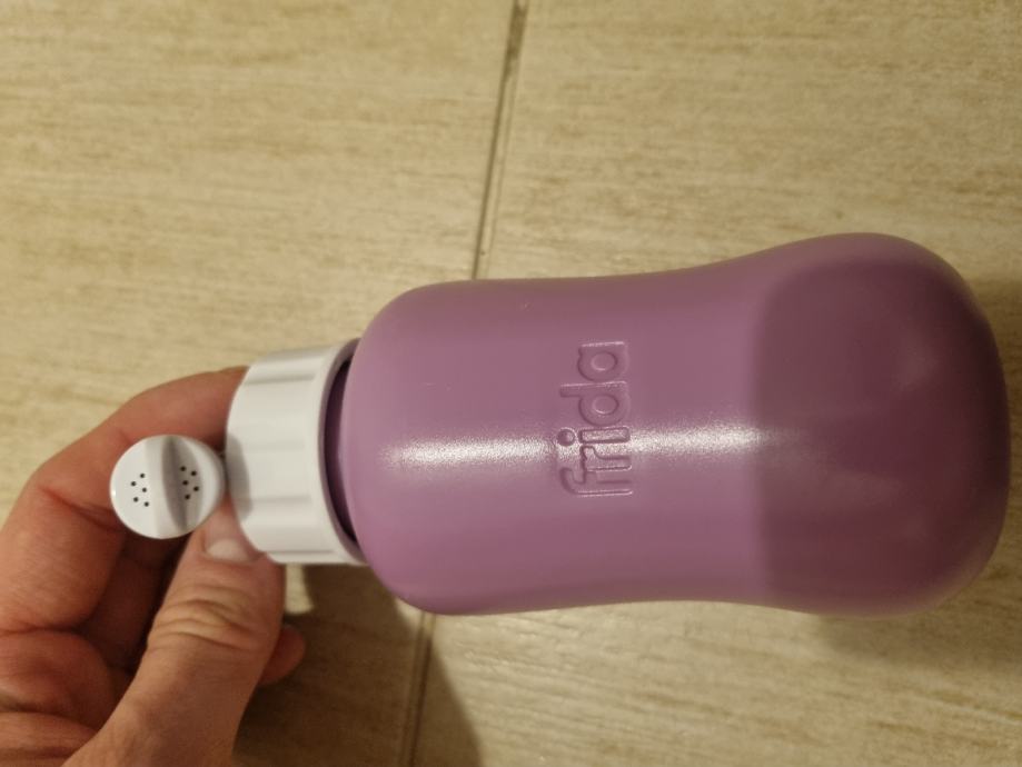 Prodajem novu Frida Mom bocu za ispiranje perineuma. Boca je u ljubičasto-ružičastoj boji s bijelim nastavkom za ispiranje. Cijena 7€.