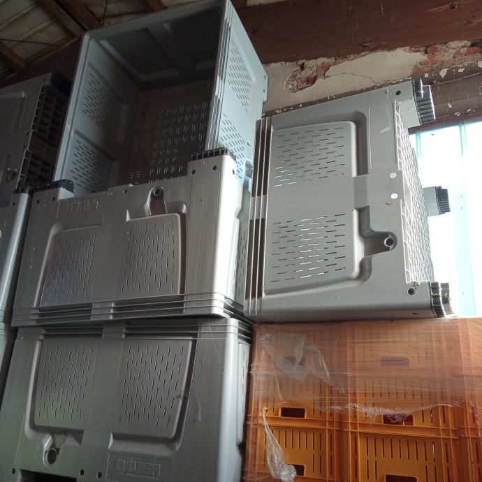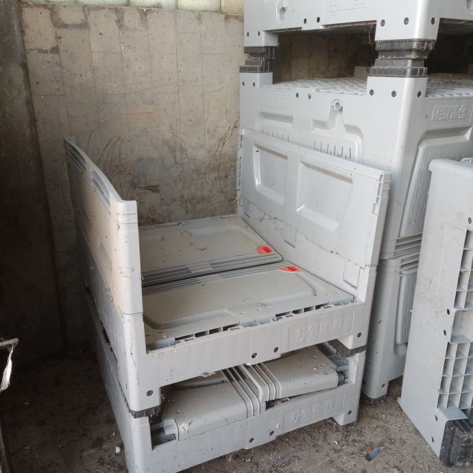 1. Pallet-box, perforirani 4 noge, d/š/v-; 1200/1000/790, težina 34 kg, zapremina 670 lit. Cijena 90 € /kom, raspoloživo 40 kom