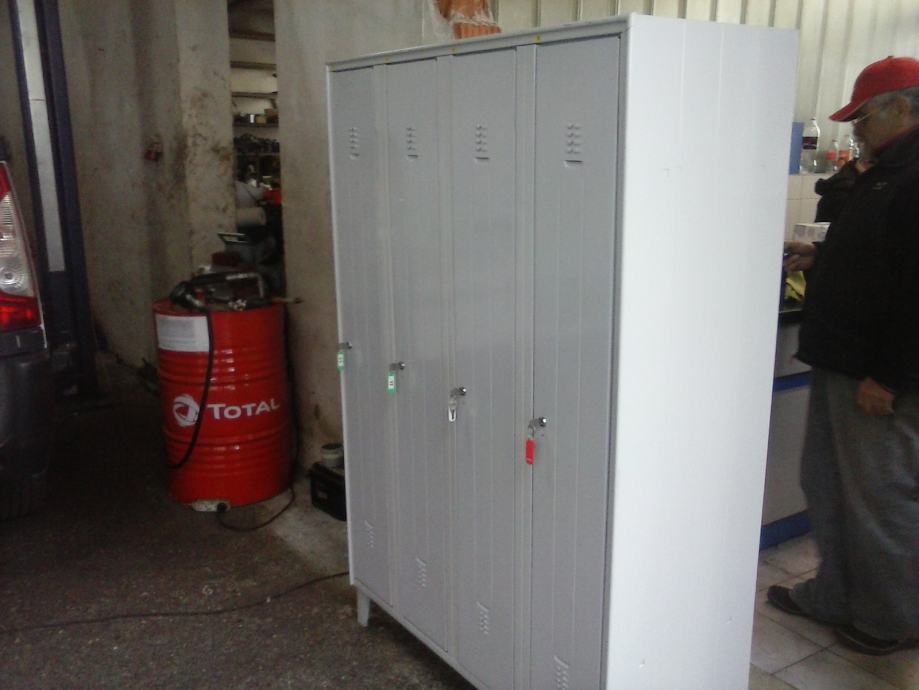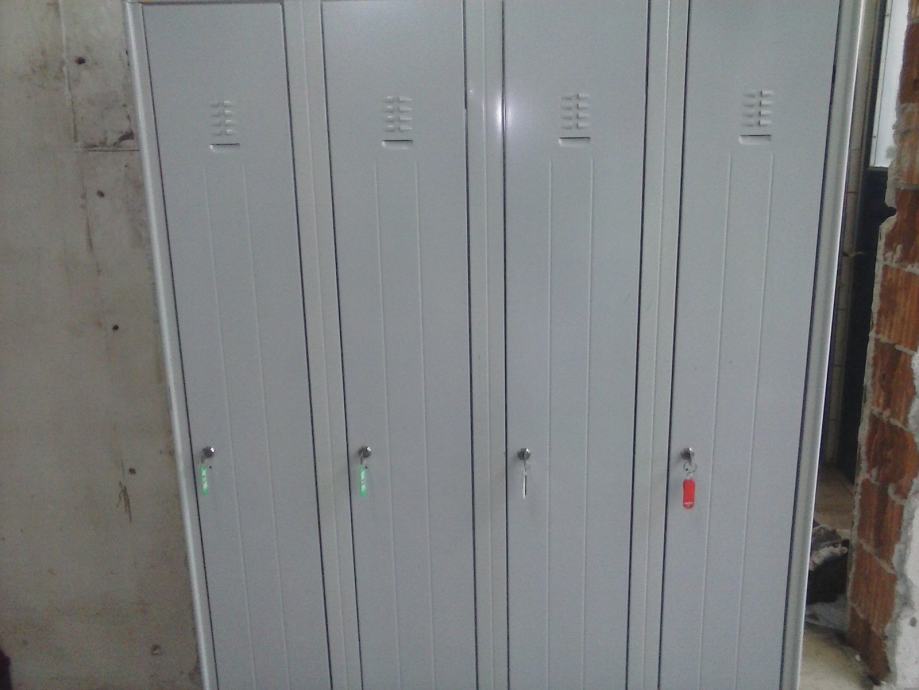 METALNI GARDEROBNI ORMARI SA 4 ODJELJKA I NOGICAMA. VIŠE KOMADA.