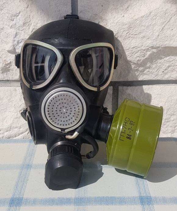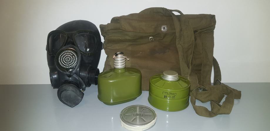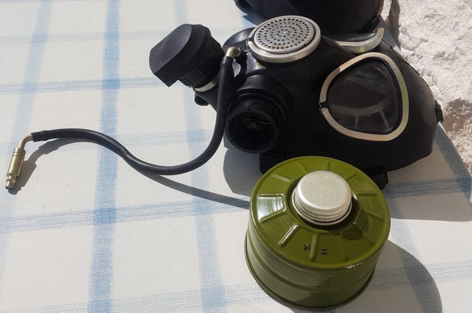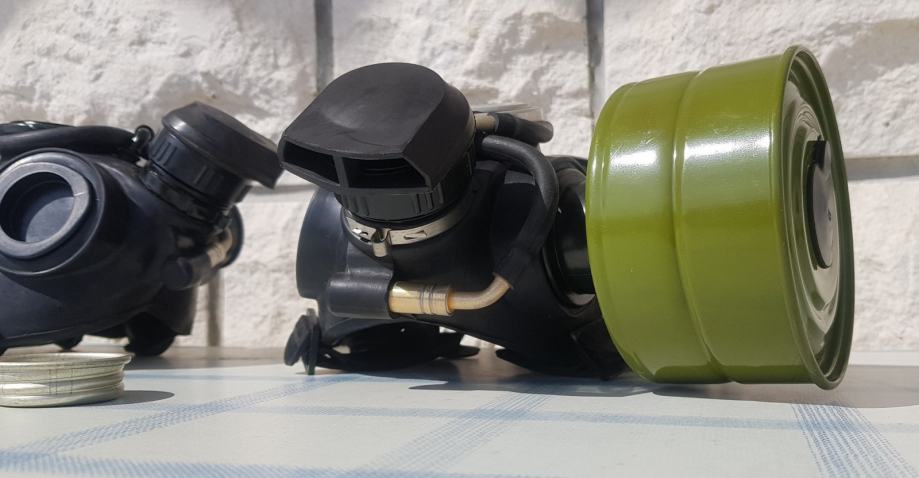 Prodajem zaštitne gas (plinske) CRNE ruske vojne maske - sa pripadajućim filterima od aktivnog ugljena.