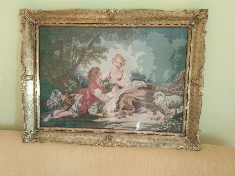 Goblen Wiehler original Pastirska idila, okvir Barok 100x75cm, slika 80x58cm, orig. Wiehler konci, moguća dostava, 098431947