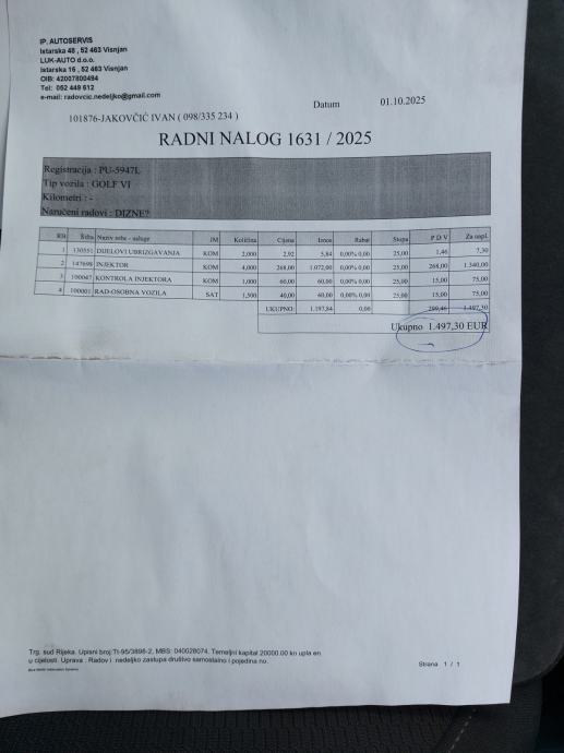 Prije godinu dana zamjenjen set zupčastog i sve što ide uz njega te prije 5 mjeseci reparirane dizne. Mali servisi rađeni svakih 10-13 tkm. Za sve posjedujem račun(neki su vidljivi na slikama, ako nekoga zanima pošaljem i ostale račune malih servisa)
