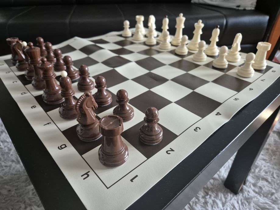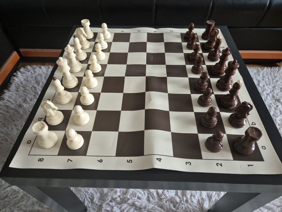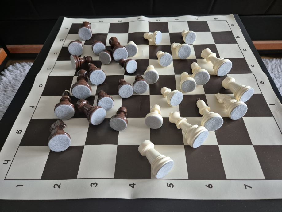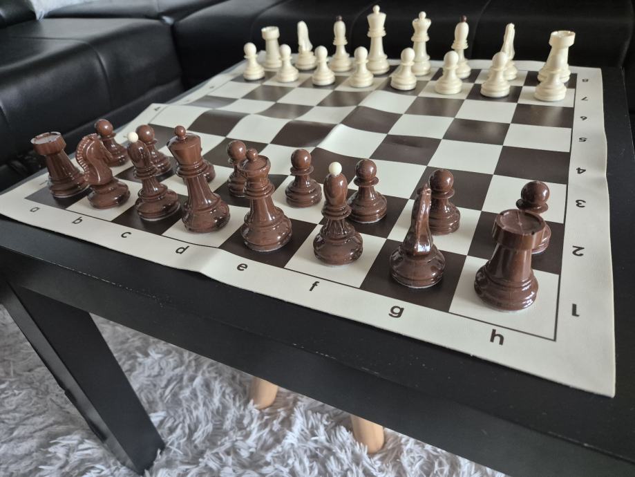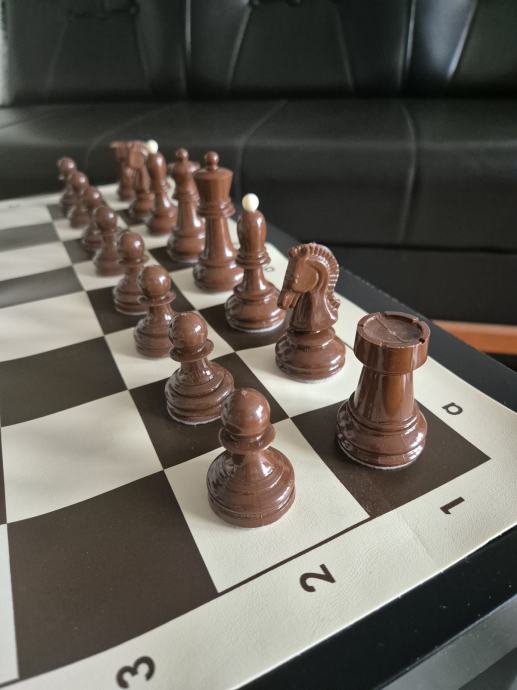 Gotovo novi profesionalni sah, sa novim filcanim figurama. Prekrasan i ocuvan. Dimenzije 50x50cm.