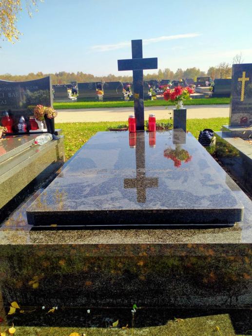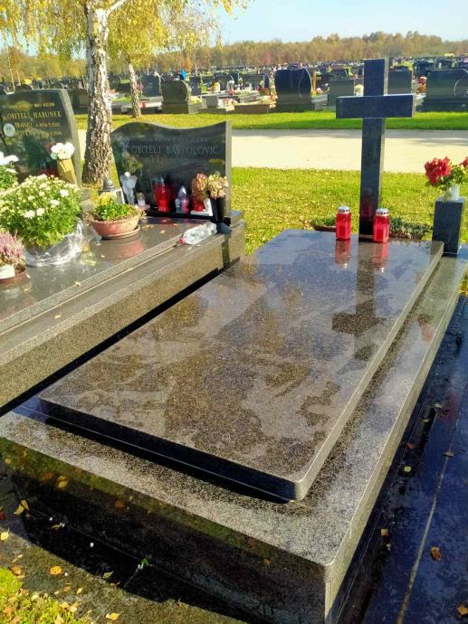 Opis: sve je od granita: fiksni križ sa likom Isusa Krista u sredini, fiksni kip Majke Božje sa desne strane, fiksni vaza sa desne strane i fiksna vaza za lampion sa lijeve strane. Slova se mogu skinuti (pričvršćena su šarafima i lako se skidaju).