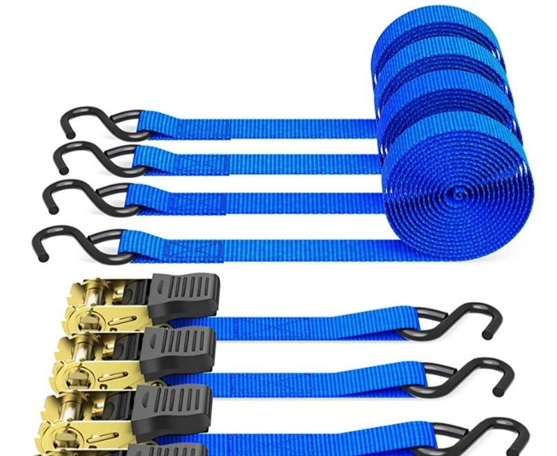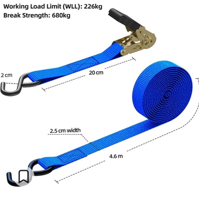 Trake za vezivanje s čegrtaljkom i S-kukama, 2,5 x 4,6 m traka za pričvršćivanje, brava s čegrtaljkom, traka za vezivanje, traka s čegrtaljkom, metalne ručke obložene gumom, do 680 kg, otporna na trganje