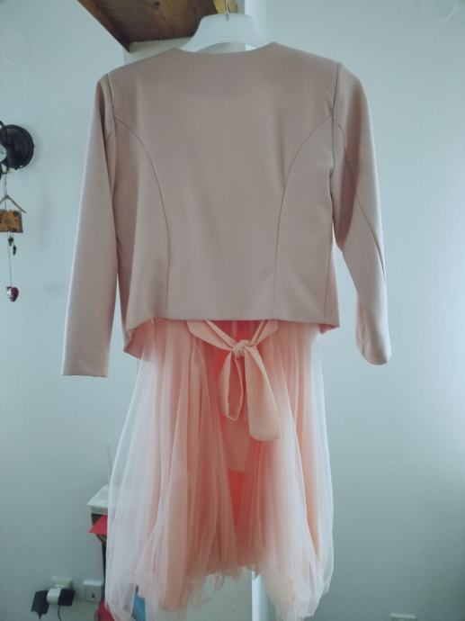 Prodajem haljinu, sako i cipele nošene na krizmu, samo jedanput. U odličnom su stanju, bez oštećenja i bilo kakvih fleka.