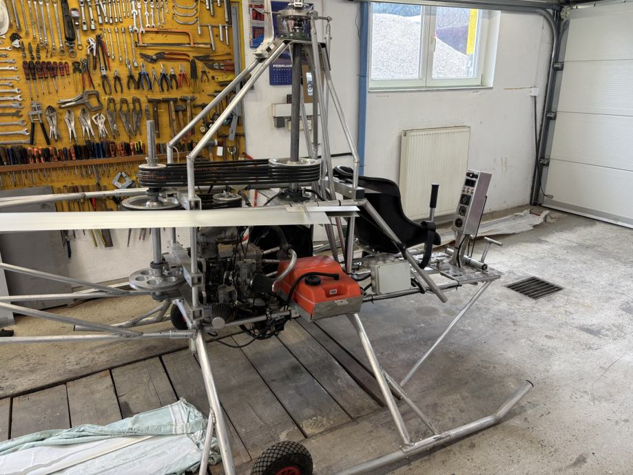 Zbog novog projekta prodajem helikopter A/W 95, izgrađen prema planovima u mojoj kućnoj radionici. Svi pokretni sustavi, rotorski sustavi, pogonske jedinice, remenice... precizno su izrađeni od strane stručnjaka na CNC strojevima. Okvir je zavaren i spojen vijcima od zrakoplovnog aluminija 6061, a ostali pokretni sustavi su od zrakoplovnog aluminija 2024. Helikopter ima sve komponente uključujući glavne propelere (kupljeni simetrični NACA 0012 profil) i stražnji propeler. Motor je zrakoplovni motor Rotax 582 (siva glava), potpuno obnovljen (zamijenjeni ležajevi na osovini, uljni semeringi, brušenje cilindara, novi klip...). Također ima osnovne instrumente (brzina motora, brzina glavnog rotora, temperatura motora i temperatura ispušnog kolektora).