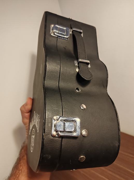 Jack Daniels kofer za bocu od viskija u obliku sanduka za gitaru.