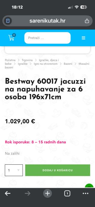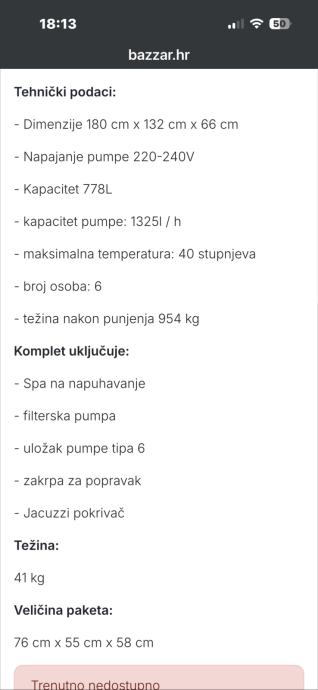 Prodajem zbog viška 8 komada jacuzzija na napuhavanje kao sa slike po cijeni od 150€ komad. Rabljeni u dobrom stanju.