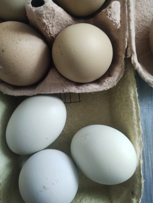 Jaja zelena i plava od kokoši hranjenih isključivo domaćom uzgojenim hranom bez koncentrata.