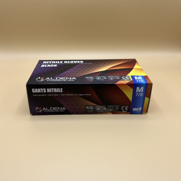 Zaštita vaših ruku na visokoj razini s Aldena crnim nitrilnim rukavicama. Jednostavna identifikacija s elegantnom crnom bojom. Teksturirani vrhovi prstiju pružaju izvrsnu kontrolu hvata. Bez lateksa, što ih čini prikladnima za osobe alergične na lateks.