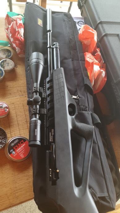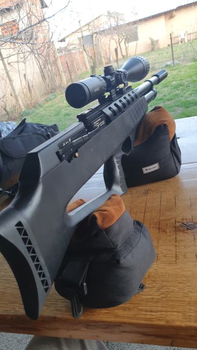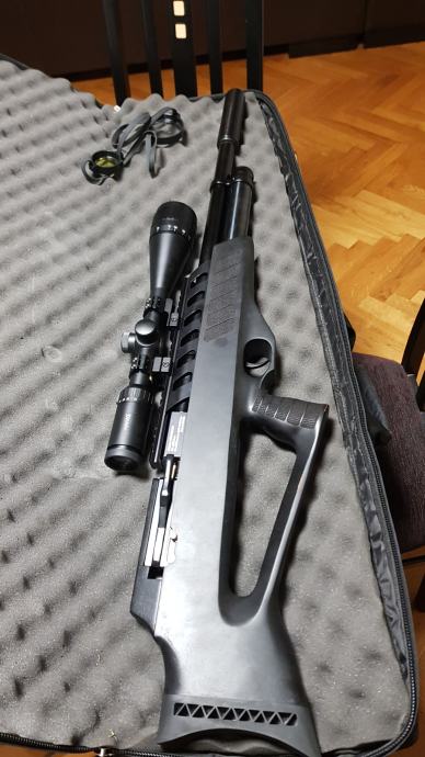 Vrhunska pcp puška proizvedena u Južnoj Koreji u odjelu precizne mehanike tvornice Hyundai. Kalibar 5.5mm , snaga podesiva od 24 do 50 jula, izuzetno precizna sa JSB diabolama i slug zrnima.Izuzetno očuvana u besprijekornom stanju. U kompletu sa optikom Valiant Lynx 6-24×50 i torbom za nošenje.