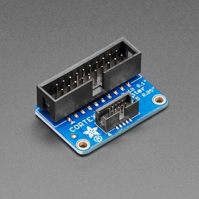 Adapterska pločica s +klasičnog' 2x10 (0.1"/2.54mm) JTAG konektora na manji 2x5 (0.05"/1.27mm) SWD konektor. Kabeli nisu uključeni u paket.