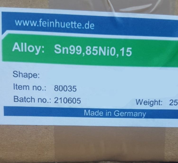 Kalaj cistoce 99.85% u sipkama