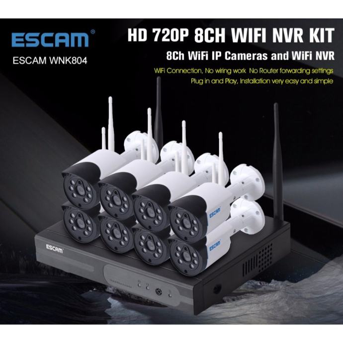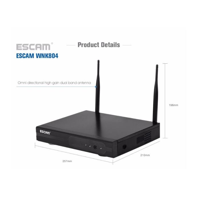 Video nadzor ESCAM WNK804 je bežični sustav s kojim možete povećati sigurnost stambenih ili poslovnih prostora. NVR snimač omogućava stalnu kvalitetnu vezu s kamerama i jednostavan pristup video snimkama.