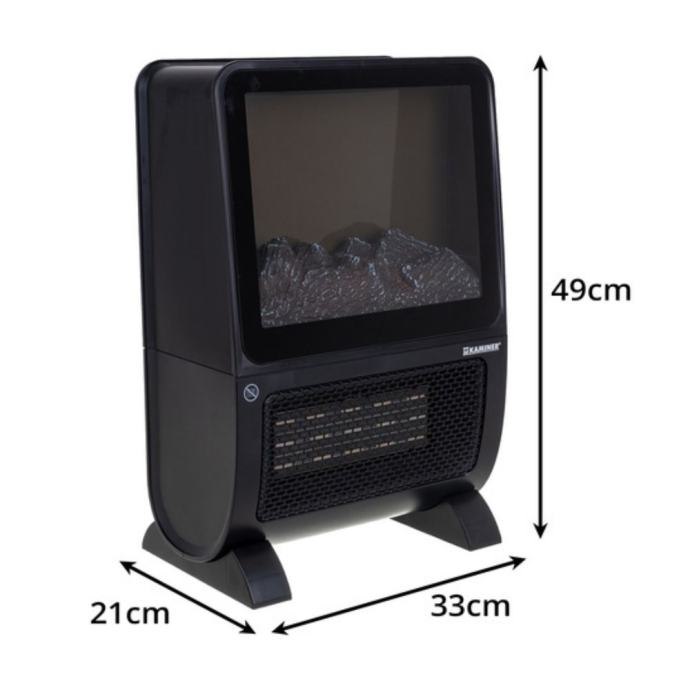 Elegantno kućište i 3D panel otporan na požar čine ovaj grijač sigurnim i estetski privlačnim dodatkom svakom interijeru. Zahvaljujući kompaktnim dimenzijama (49 × 33 × 21 cm) i ugrađenoj ručki, lako ga možete premjestiti gdje god želite – u dnevnu sobu, spavaću sobu ili ured.