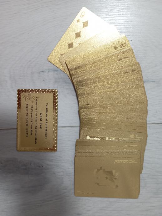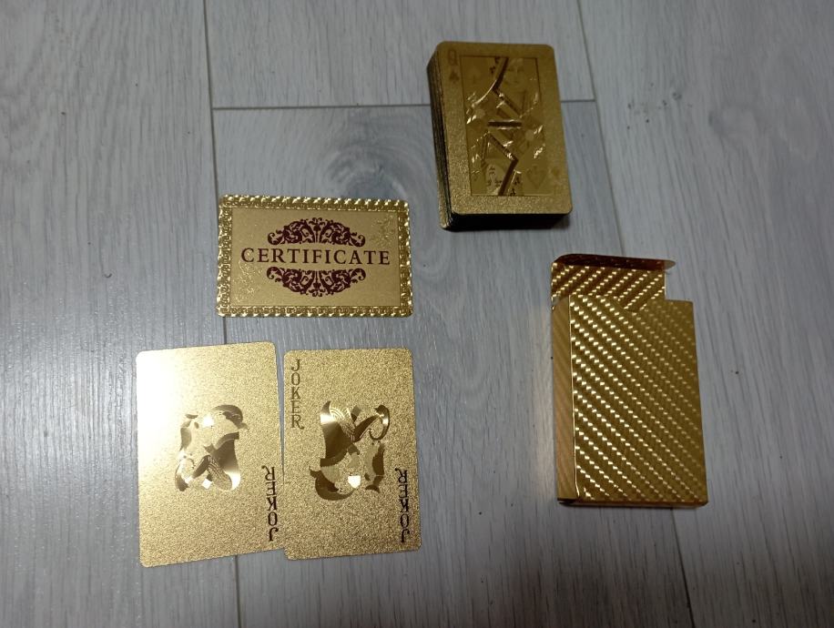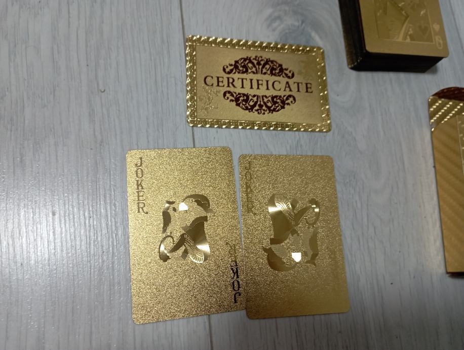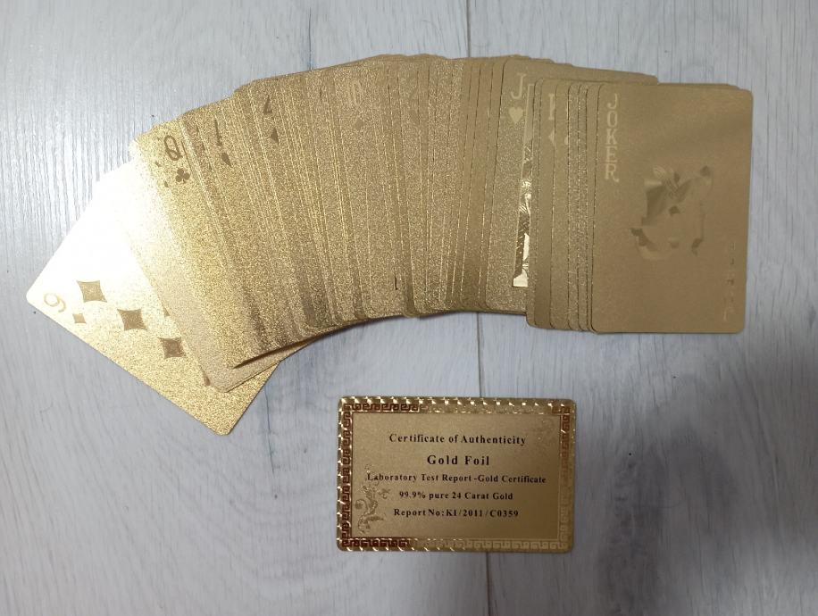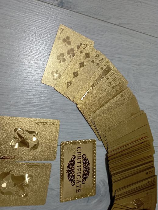 Nove igračke karte (52)sa pozlatom od 24 cat.,karte iz Casina Badem badem,rijetkost,raritet..iste takve karte u filmu Casino Royal., pogledajte i ostale moje oglase, šaljem poštom, tekući.