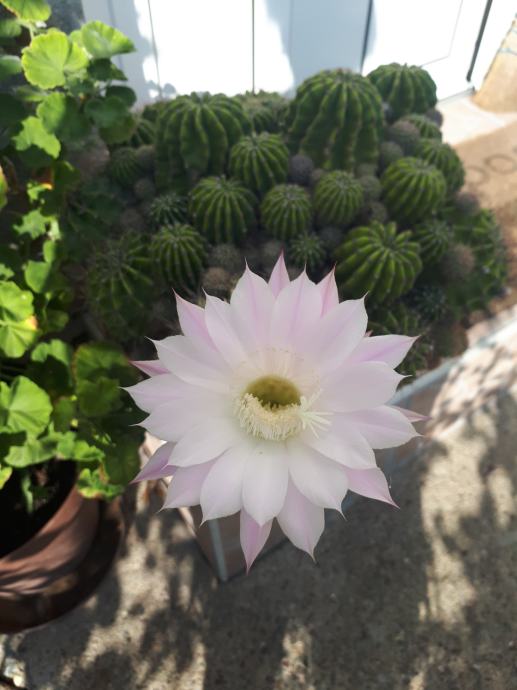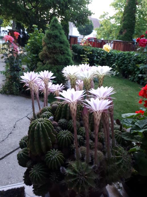 Prodajem veliki katus star 30 godina i svake godine cvate s manje ili vise cvijetova .Vrlo je tezak i zahtjevan kod unosenja u kucu ili stan zbog bodlji.U jednom cvijetnjaku ima dvije nijanse cvijeta bijeli i svjetlo roza.Cvjetovi traju od 2 do 8 dana zavisi kako se otvaranu no cvatu i 2 do 3 puta kroz godinu.Moze se veget.razmnozavati ima cca 80 malih kaktusica.