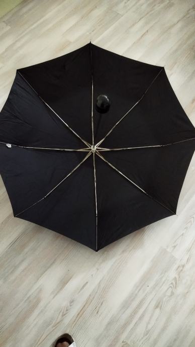 Kišobran crni Samsonite Royal, ženski-muški,univerzalan,jer nije glomazan,promjer platna 94cm,ima 8 žbica, kompletna dužina ručke je 53cm s lijepo zaobljenom drškom.Dužina sklopljenog je 23 cm.