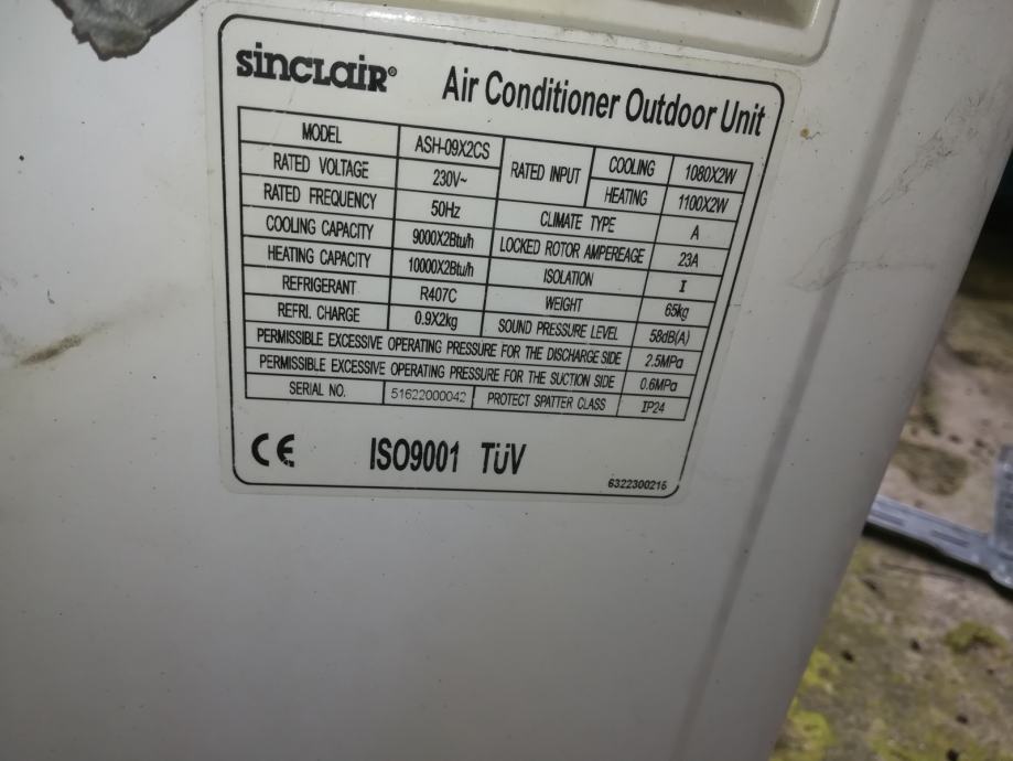 Dual klima uređaj sinclair, 2*2,5kw