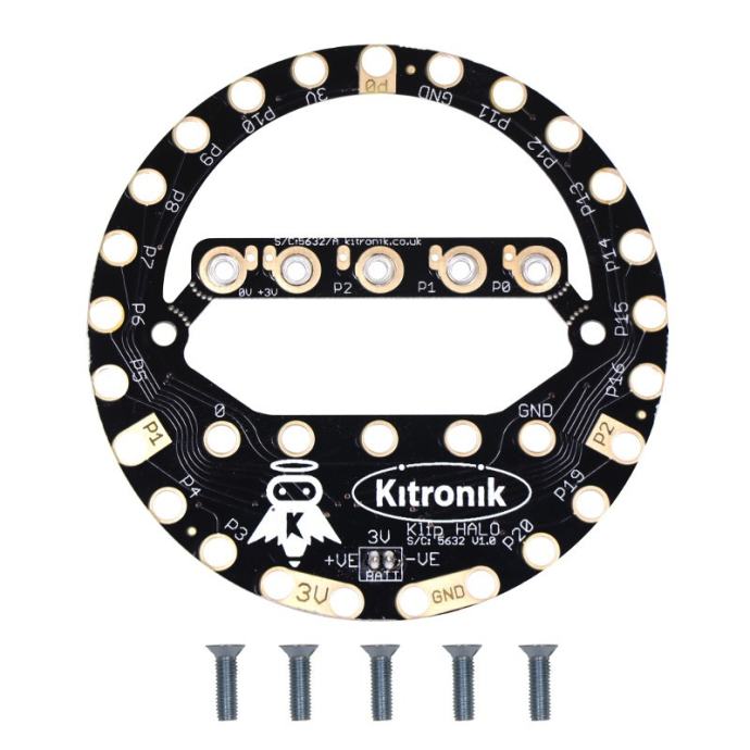 Sam BBC Micro:bit pičvršćuje se na Klip Halo pomoću pet priloženih vijaka koji ga drže čvrsto na mjestu i preko poprečne prečke na kojoj se već nalaze potrebne matice, kao i dodatni konektori za lemljenje (PO, P1, P2, 3V & GND), ukoliko se za time ukaže potreba. Na Halou se nalaze dodatni priključci za 3V i GND kako bi se pojednostavnilo korištenje. Napajanje pločice i Micro:bita moguće je putem JST priključka na stražnjoj strani.