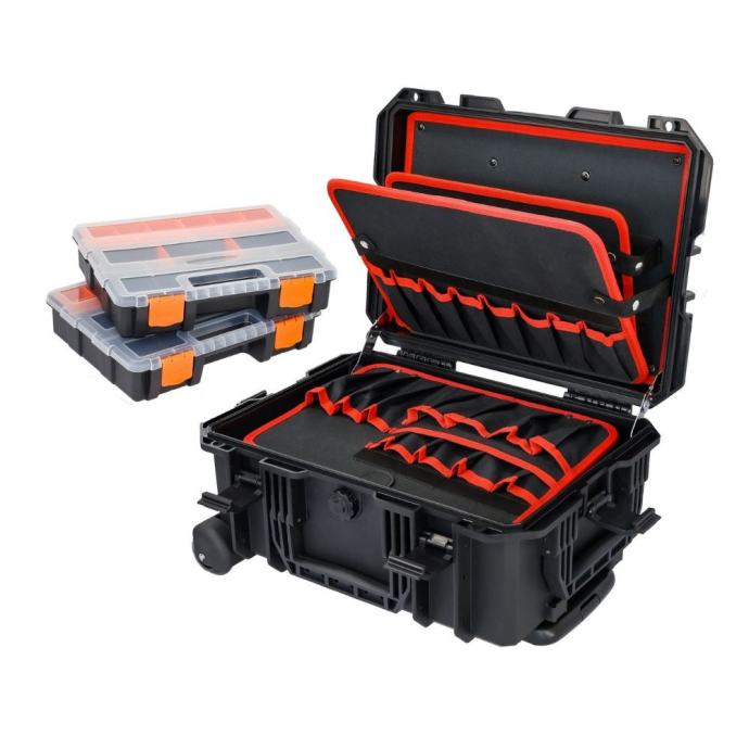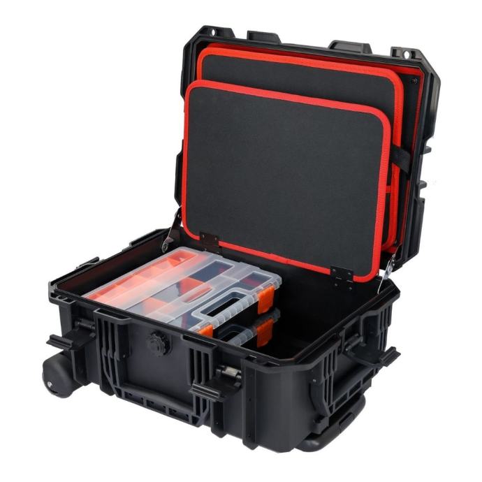 Ako tražite pouzdanu kutiju za alat koja će vam olakšati transport i organizaciju, naš kofer za alat s kotačima savršen je izbor. Osigurat će optimalnu zaštitu za vaše alate, bilo da radite na gradilištu ili tijekom mobilnih radova.