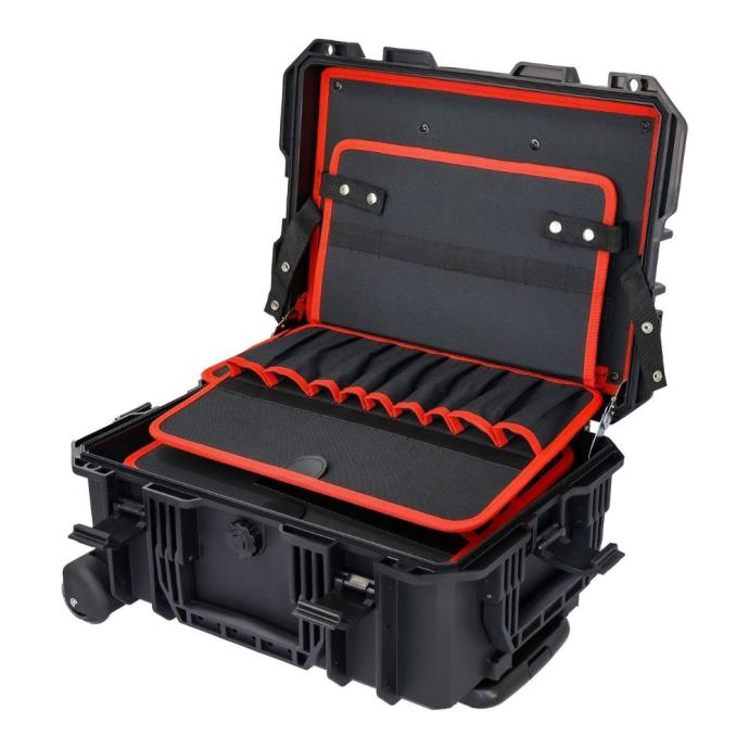 Kofer je opremljen ventilom za izjednačavanje tlaka, što ga čini sigurnim za transport u zrakoplovu. Uz to, ima dvije ušice za zaključavanje, što osigurava sigurnost vaših alata.
